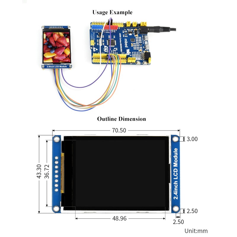 • 2.4inch LCD Display Module, 65K RGB Colors, 240x320 resolution, 65K RGB colors, clear and colorful displaying effect