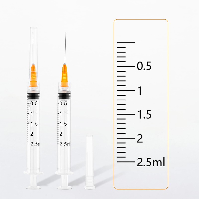 2.5ml Syringe with Needle-25G 1 Inch Needle, Individual Package-Pack of 100