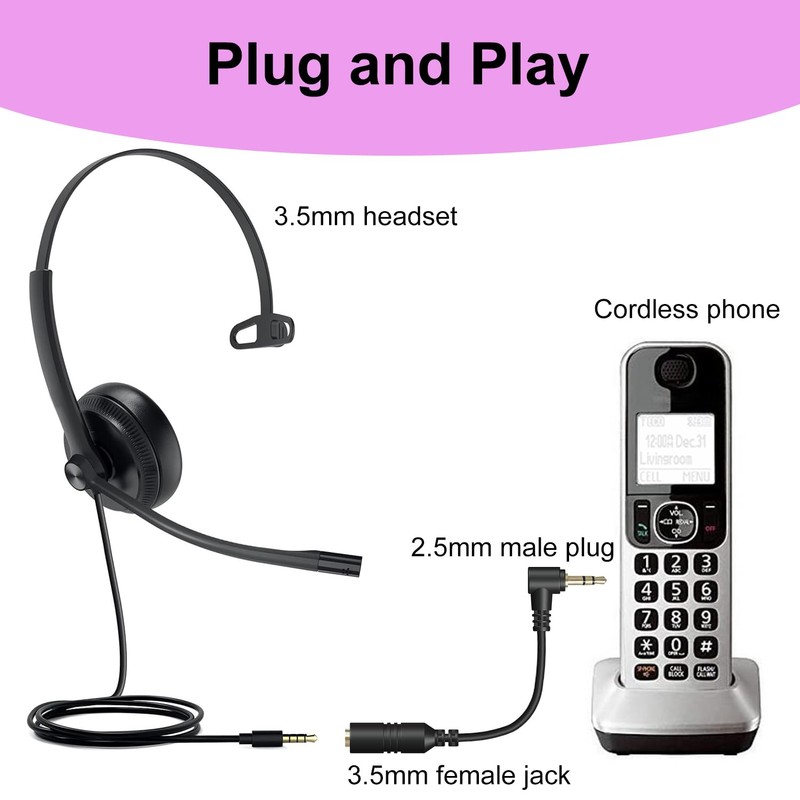 - [Compatibility for 2.5MM Male Plug]: Compatible with most Panasonic Cordless Dect phones and AT&T VTech RCA Uniden Cisco Linksys SPA Clarity Zultys Gigaset Cortelco landline phones with a standard 2.5mm headset jack.