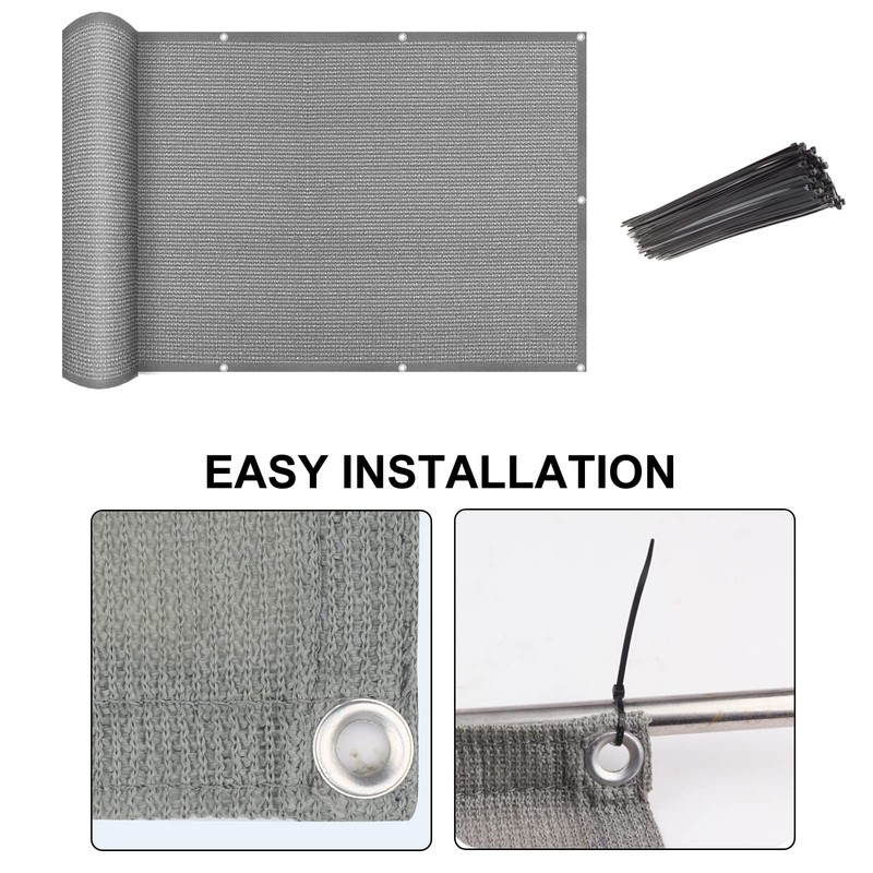 2'6" x 18' Grey Fence Screen Balcony Privacy Screen Shade Netting Mesh Cloth with Grommets for Apartment, Patio, Backyard, Porch, Railing - Customized Size