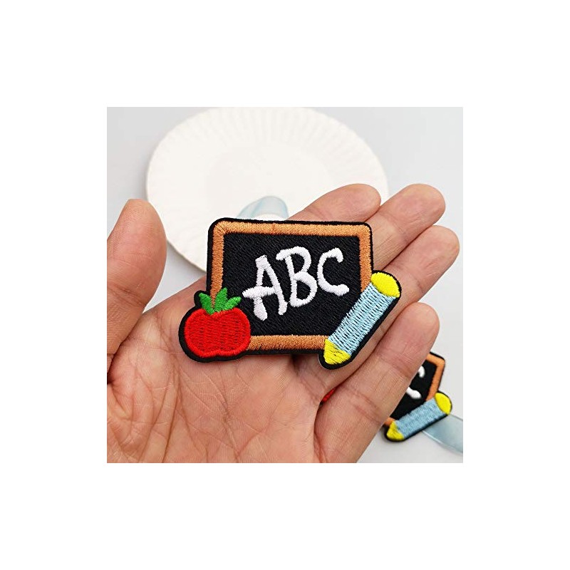2.6"x1.8" 12pcs Black to School ABC Black Board Patch Iron On Embroidered Patches Appliques Machine Embroidery Needlecraft Clothes Accessory Sewing DIY