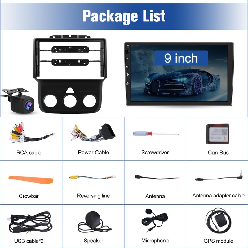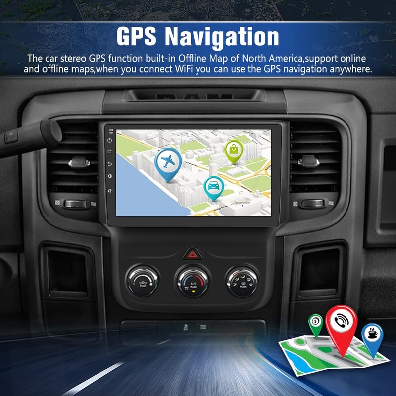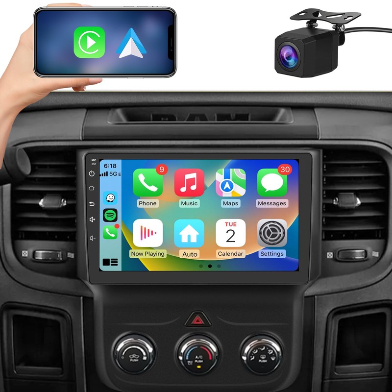2+64G Car Radio Stereo for Dodge RAM 1500 2500 3500 2013 2014 2015 2016 2017 2018 with Carplay Android Auto Bluetooth GPS Navigation