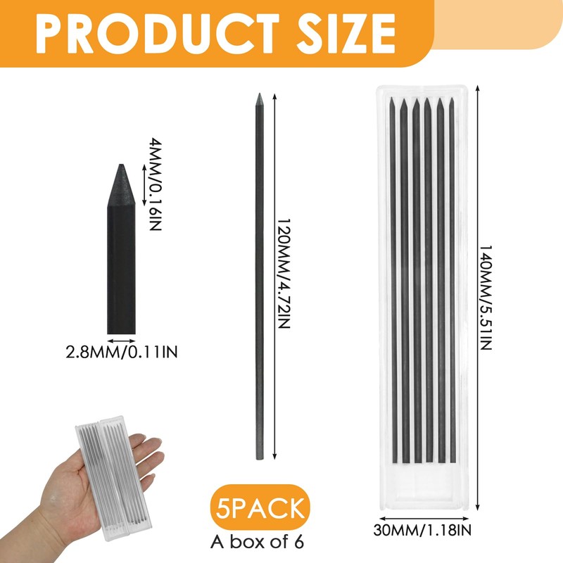 • 【2.8mm Pencils】These 2.8mm diameter leads, 12cm/4.7inch in length, are perfect for deep-hole marking and drawing in deep place or narrow hole, offering a comfortable writing experience for woodworking.
