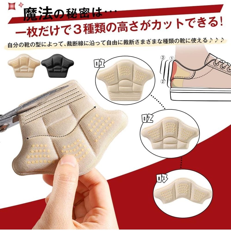 2足入れ かかとパッド 靴擦れ防止 脱げ 防止 クッション性 衝撃吸収 サイズ調整 革靴 スニーカー パンプス 男女兼用(ブラック)