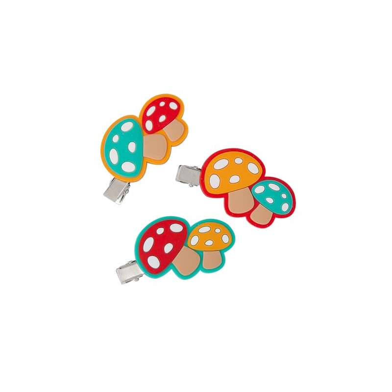 2" Brightly Colored Mushroom Hair Clips - 12 Pc.