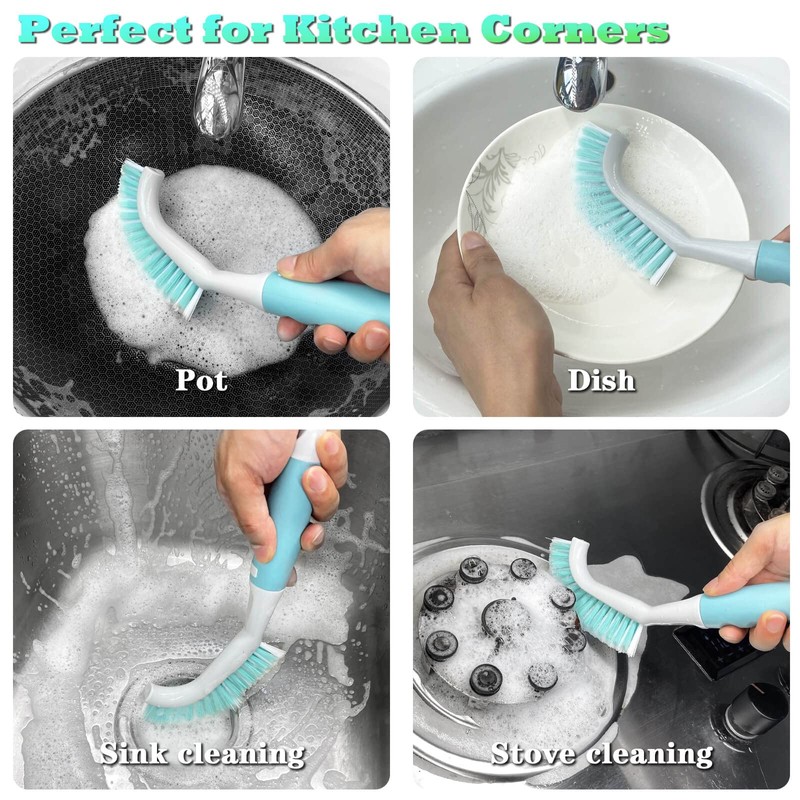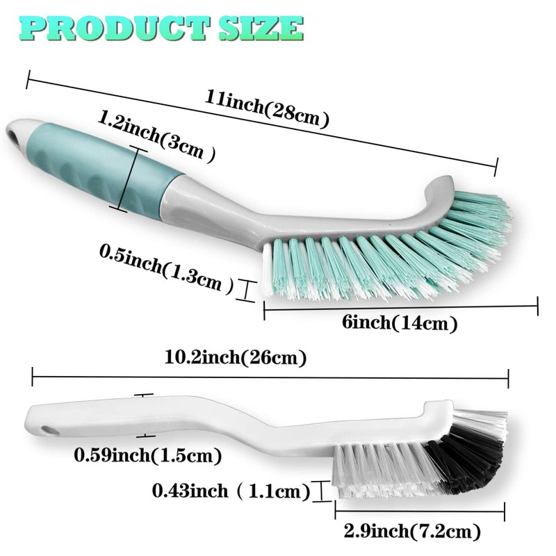 - Juego de cepillos de limpieza: 2 cepillos de limpieza de mano se utilizan para limpiar cocina, baño, sala de café y sala de té. Diseño de ángulo de 90°, cabezal de cepillo para polvo en forma de L más conveniente para limpiar lugares difíciles de alcanzar. Funciona bien en áreas pequeñas. El juego de cepillos de limpieza no solo es adecuado para uso familiar, sino también para tiendas, escuelas, hoteles, oficinas, etc.