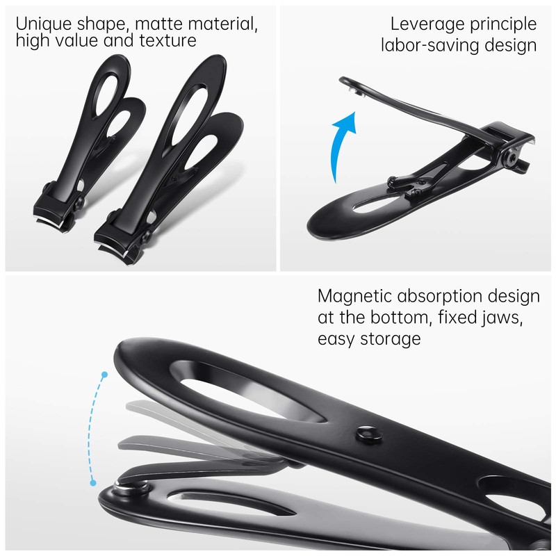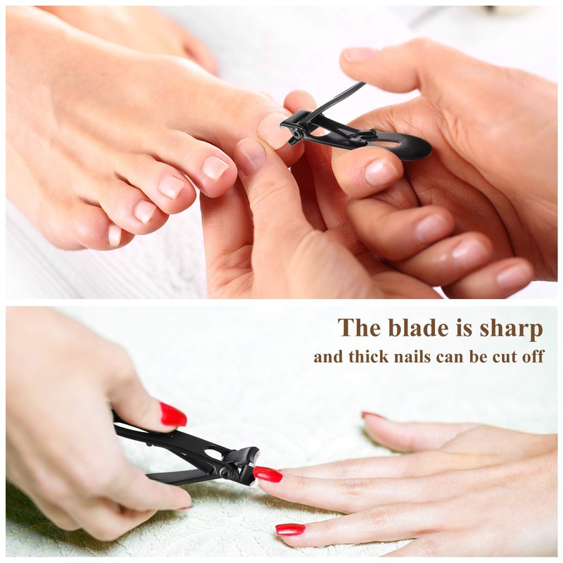 - Tamaño de apertura amplia: el cortaúñas negro de gran tamaño, con apertura de mandíbula ancha de 180 grados, que puede abrir hasta 15 mm, en comparación con los cortaúñas regulares, más adecuado para uñas de manos y pies extra gruesos