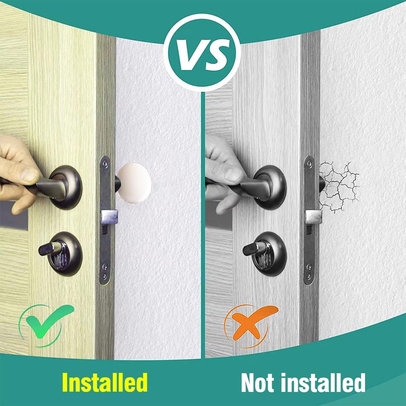 - Shock Absorption and Noise Reduction: the wall door handle stopper protects interior walls from impact damage by shielding the point of contact on the wall from door knobs and also reduces noise from slamming doors. The wall protectors can also be used to conceal small holes in walls and prevent further damage caused by doorknobs
