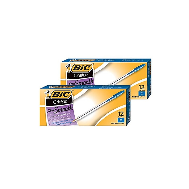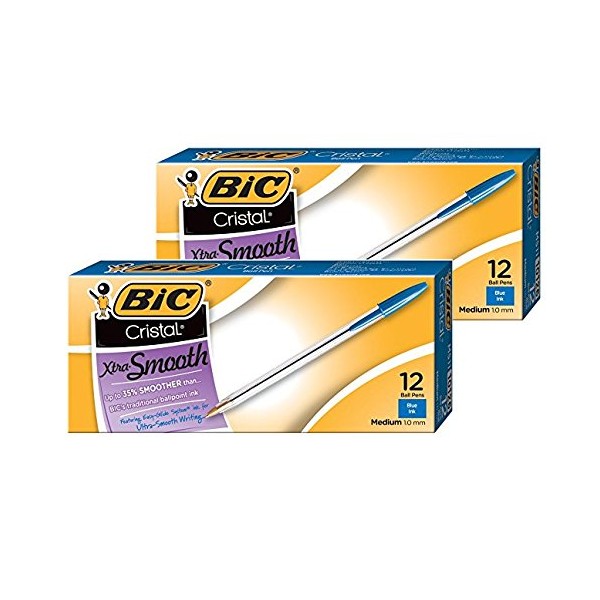2 DOZEN: Cristal Xtra Smooth Ball Pen, Medium Point (1.0 mm), Blue, 12-Count MS11