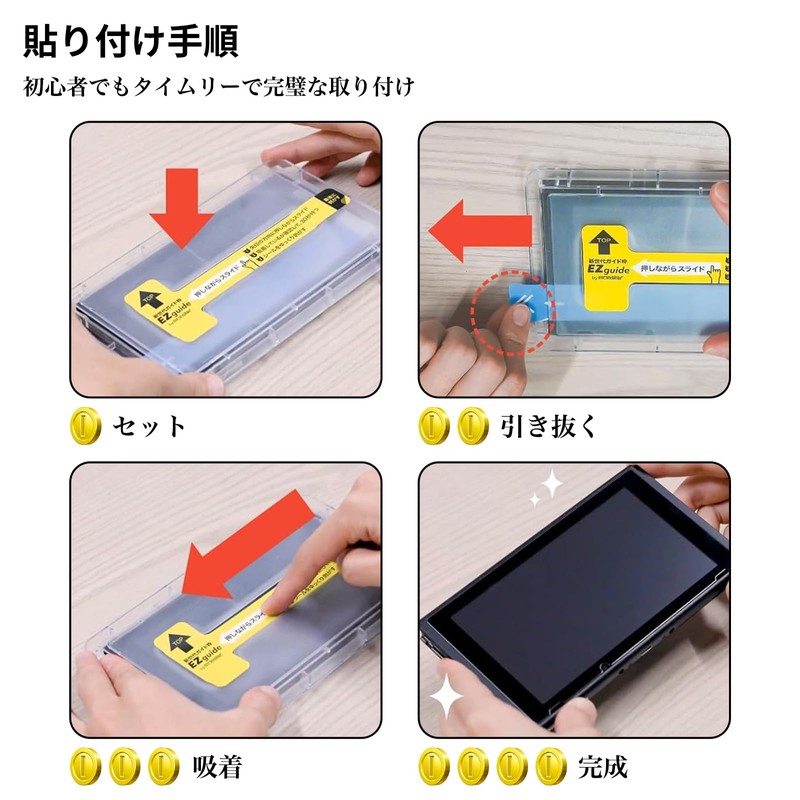 - 【対応機種】Switch 2 専用ガラスフィルム*2、専用貼り付けガイド枠*1。ご注文の間違いを防ぐため、ご注文前に型番をご確認ください。