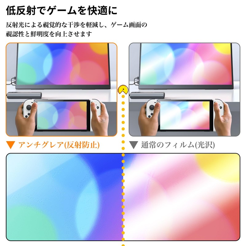 - 【アンチグレア&反射低减】フロストフィルムの素材で、光をある程度散乱・吸収します。光はフィルムを通過すると、内部の微細構造によってさまざまな方向に散乱され、一部は吸収されるため、人間の目に映る光の総量が減少します。反射を減らすだけでなく、画面全体の明るさを均一にし、明暗の強いコントラストによる視覚疲労を軽減します。
