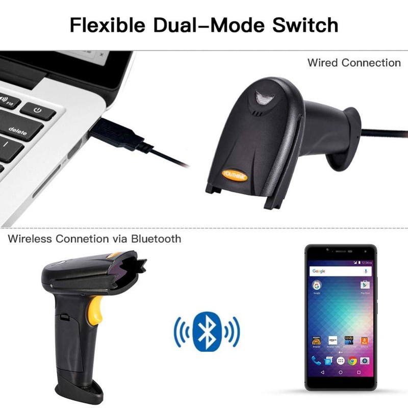 2-in-1 Bluetooth 4.0 Barcode Scanner Wireless & Wired 1D Handheld USB 3.0 Barcode Reader Automatic Continuous Scan and Memory for Supermarket Warehouse Express Delivery for Parts and Tool Replacement