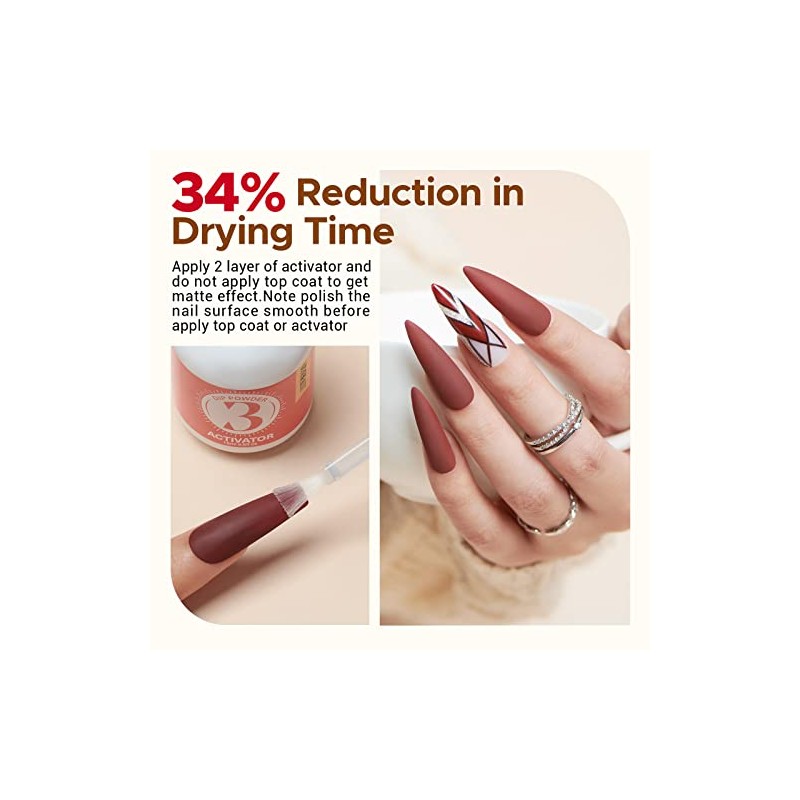 - ღPackage Contents: 1*15ML Dipping Powder 2 in 1 Base &Top Coat,1*15ML Dip Powder Activator,2 Replacement Brushes.The set is the great choice to dip powder for diy nail art.