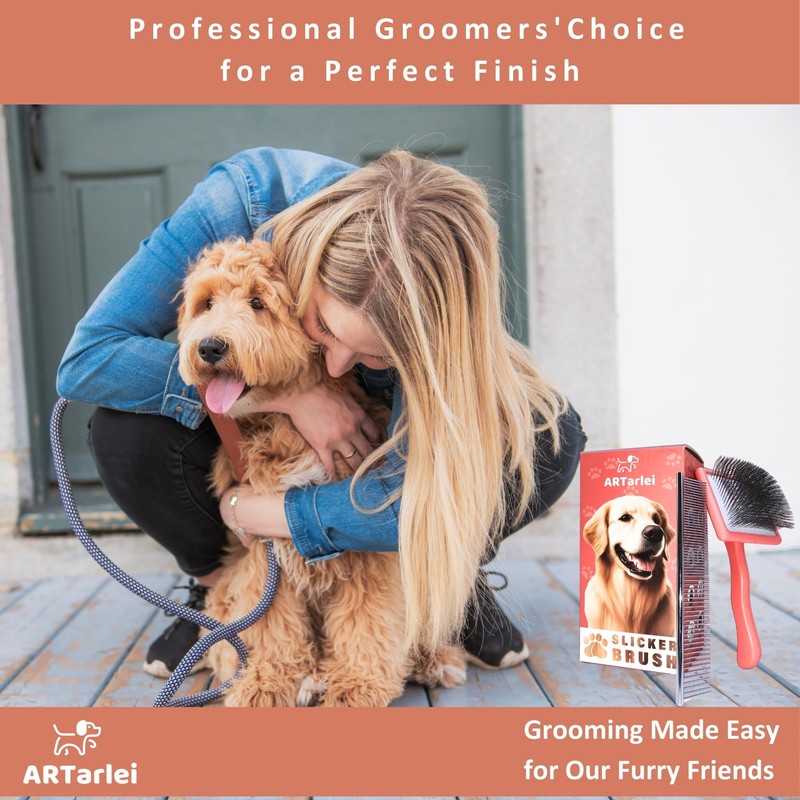 - ✅ 【Professional Grooming at Home】Achieve professional grooming results with the 2-in-1 Dog Slicker Brush & Comb, Implementing a grooming routine is crucial; using the Brush & Comb thrice weekly will help keep your Golden Retriever & Doodle, Labradoodle, or Bernedoodle fur mat-free. Maintain their coat's natural luster, softness, and health with regular brushings.