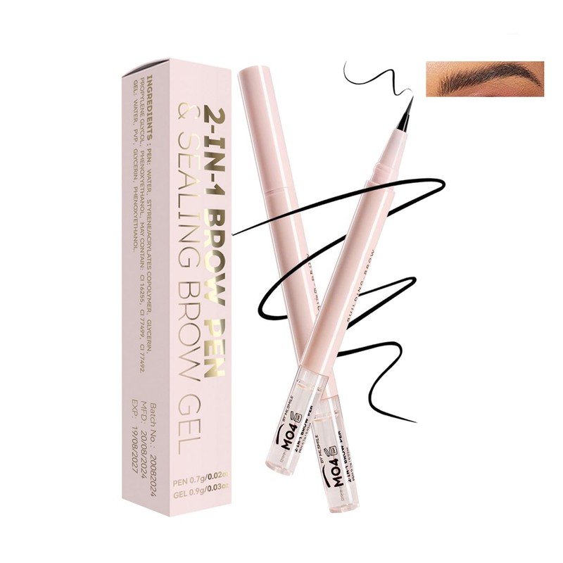 2-in-1 Eyebrow Pencil and Clear Gel – Dual-Ended Waterproof Brow Pen with Microblading Effect for Long-Lasting, Smudge-Proof, Defined Brows(Black)