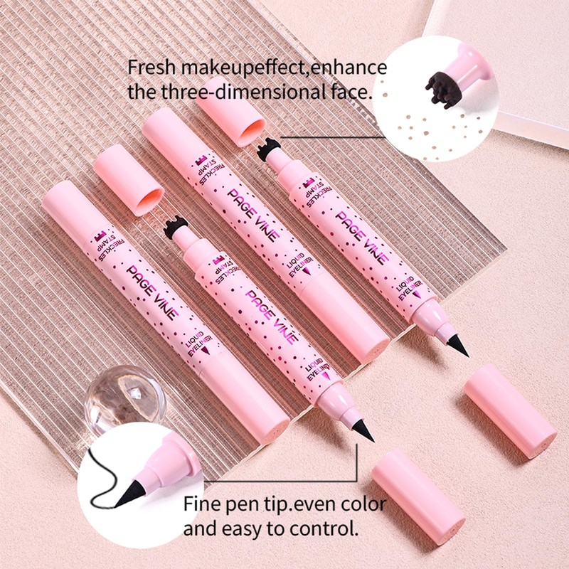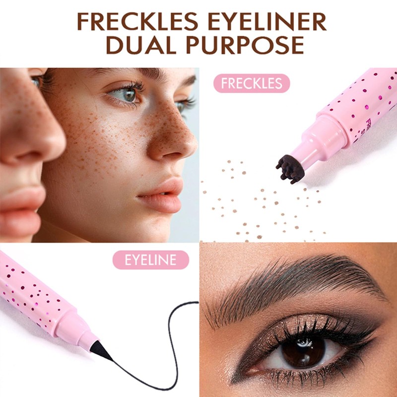 - 【Freckle Eyeliner Pen Set】The freckle pen eyeliner kit features a faux freckle stamp on one end and a precision black liquid eyeliner on the other.You can effortlessly switch between a fun sun-kissed and a sleek eyeliner.The freckle stamp has four colors to choose from, but the eyeliner pen is only black