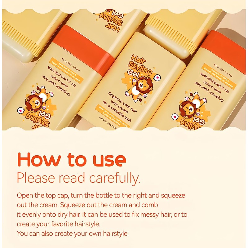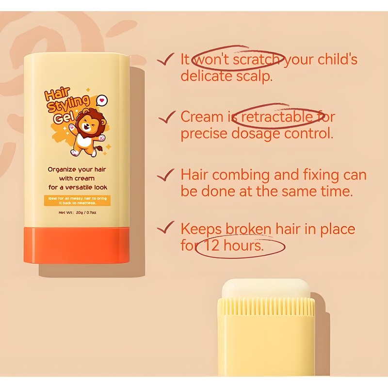Adorable Hair Styling Stick for Kids 🌟 Transform your little one's look with this cute hair wax stick featuring fun cartoon designs! Our 2-in-1 styling stick combines a built-in comb and gummy wax gel formula for effortless hairstyling. Simply glide the hair stick through strands while combing to tame flyaways and create perfect slick back styles.
