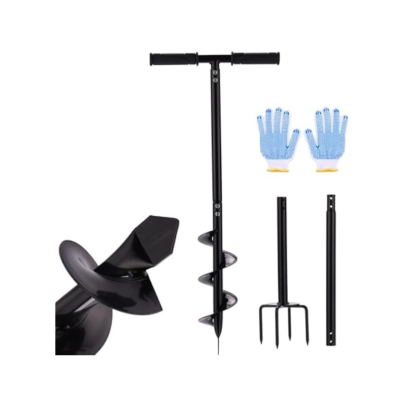 2 in 1 Hand Auger Spiral Drill for Planting, 44.5inch Post Hole Digger Manual Auger for Fence Posts, Sand, Bulb, Seedlings, Tree, Mail Box, Manual Garden Spiral Hole Digging Drill with Non-Slip.