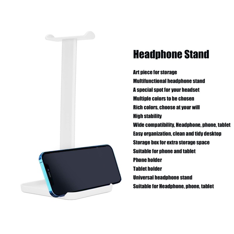 2 in 1 Headphone Stand with Phone Holder, ABS Gaming Headset Headphone Stand Holder Hanger, Solid Base, Tablet Holder (White)