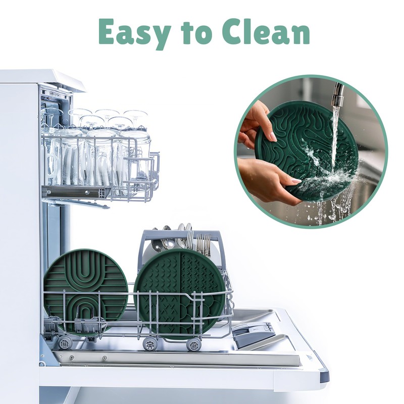 The seamless 2-in-1 design of the slow feeder bowl and lick mat makes it a versatile set—the lick mat doubles as an airtight lid, perfect for fridge storage or on-the-go adventures. You can use the included silicone scraper create DIY gourmet meals with wet food effortlessly, yogurt, or treats. The varied textured patterns on the lick mat keeping pets engaged and entertained during mealtime.Crafted from food-grade silicone, this set is non-toxic, odorless, and eco-friendly, ensuring pets enjoy every bite safely. You can confidently prepare meals with any ingredients.Turning every feeding into a bonding momen.