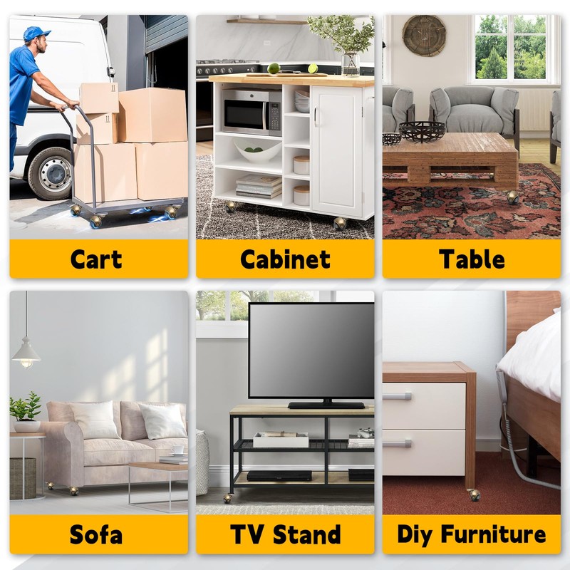- WIDE APPLICATION SCENARIOS - A set of ball flat casters contains 8 castor wheels, also has 32 screws and 1 screwdriver, easy for you to finish the installation quickly, these casters set of 4 are widely used, both indoor and outdoor, can work properly, usually used for furniture, cabinet, cart and so on.