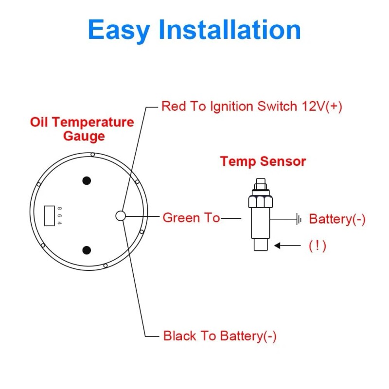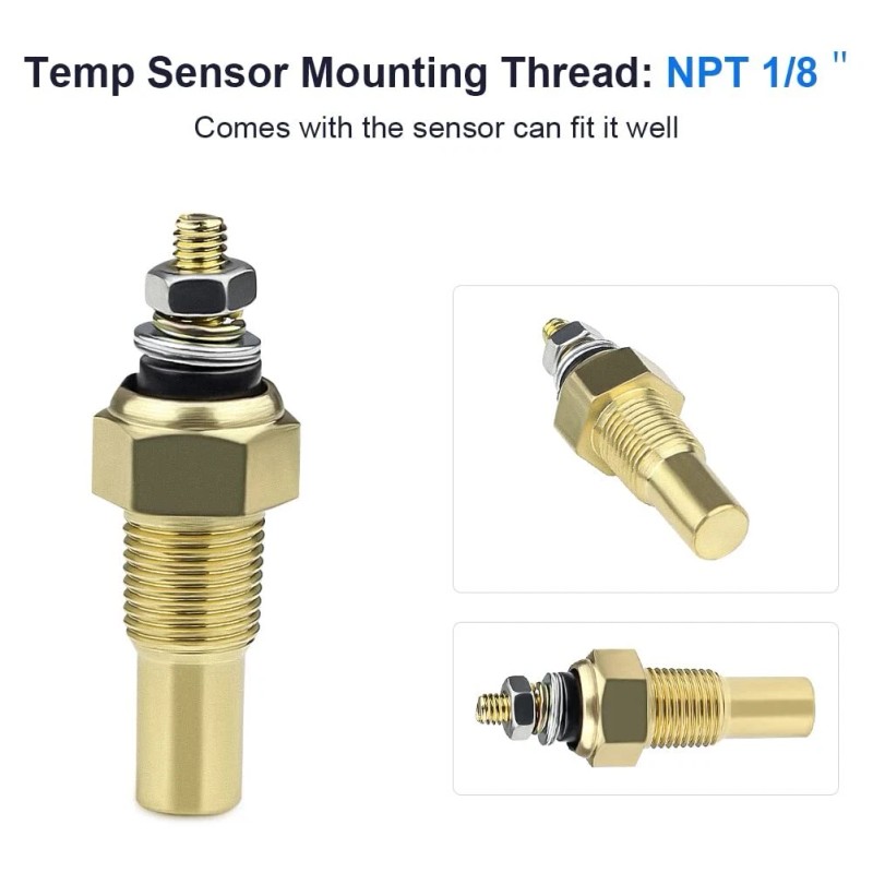 - 3.Easy installation and direct replacement:Our gauge includes electric wire,temp sensor and installation, Comes with the temp sensor can fit it well,Temp sensor mounting thread: NPT 1/8“
