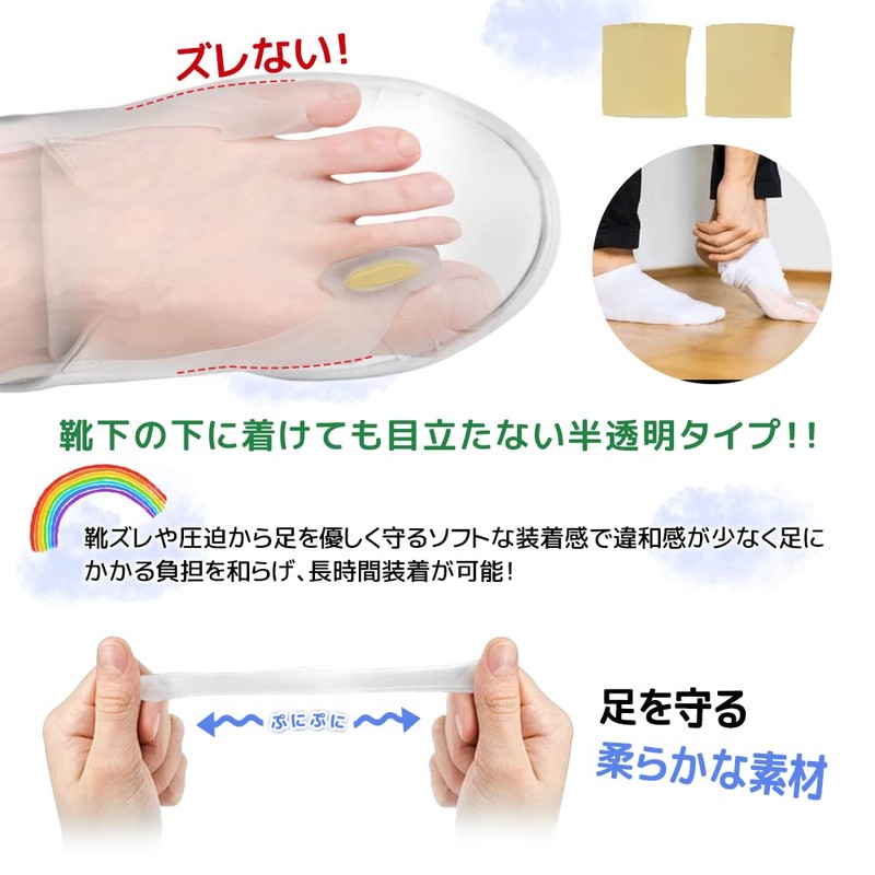 - 【高品質なシリコン】人体に優しい高品質なシリコン素材を採用し、伸縮性と緩衝性を備えていて、とても柔らかく、肌触りも滑らかで足指を優しく保護します。靴を履くと足側面が擦れて痛むことも緩和され、快適な歩行を実現します。※ご注意:過度に力をかけた場合や爪などで傷が入ると破損の恐れがございますのでご注意ください。