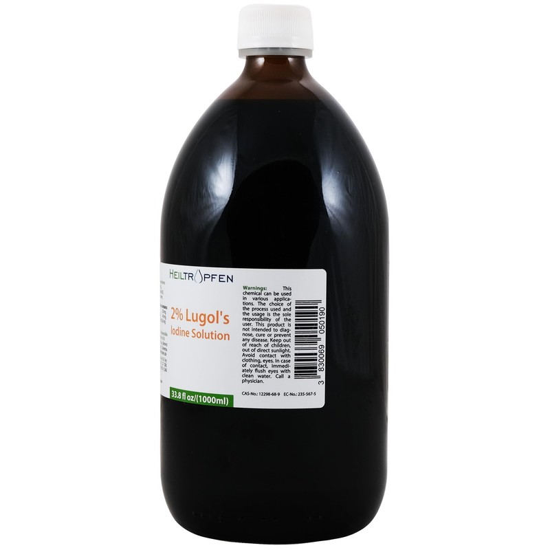 2% Lugols Iodine Solution | 33.8 Fl Oz - 1000 ml | Made with 2 Percent Iodine and 4% Potassium Iodide | Glass Bottle | Lugol's Solution | Heiltropfen®