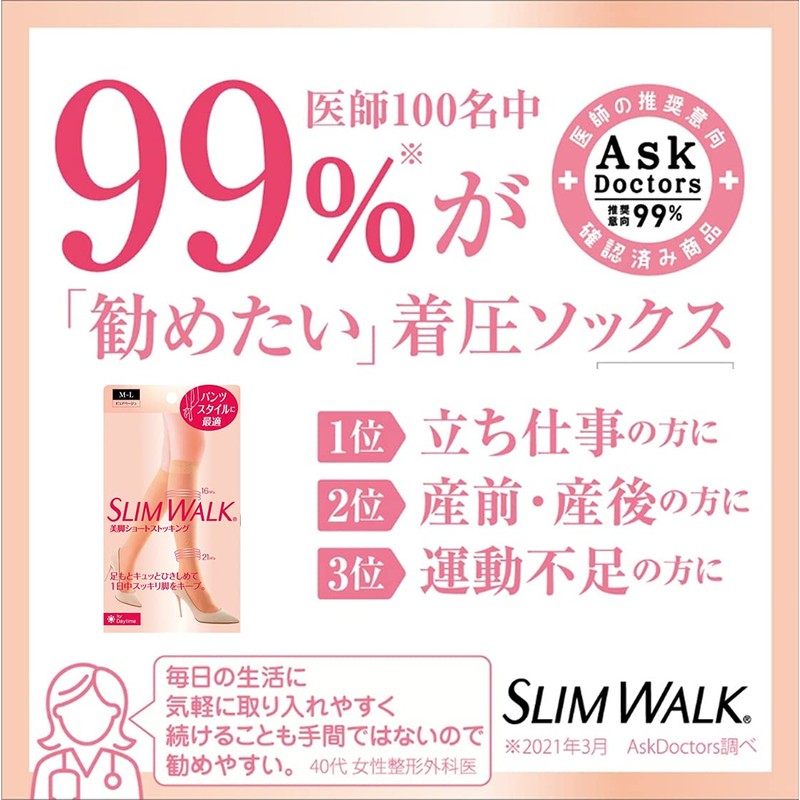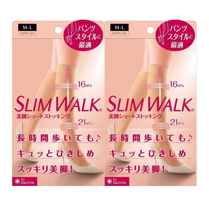 着圧ストッキング スリムウォーク 美脚 ショートストッキング 2個パック M-L ピュア ベージュ 着圧 ストッキング AskDoctors ひざ下 パンツ スタイル