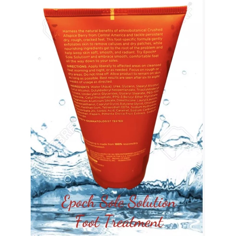 An intense cream specifically formulated to aid those suffering from dry feet to achieve healthy and silky soft feet. Formulated with allspice berry, it infuses deep into the skin, healing cracked heels. The Epoch cream moisturizes the heel and flakes off dead skin, leaving silky feet. Papain breaks and softens thick skin, easing exfoliation. The allspice berry mild scent is natural and does not contain allergens.