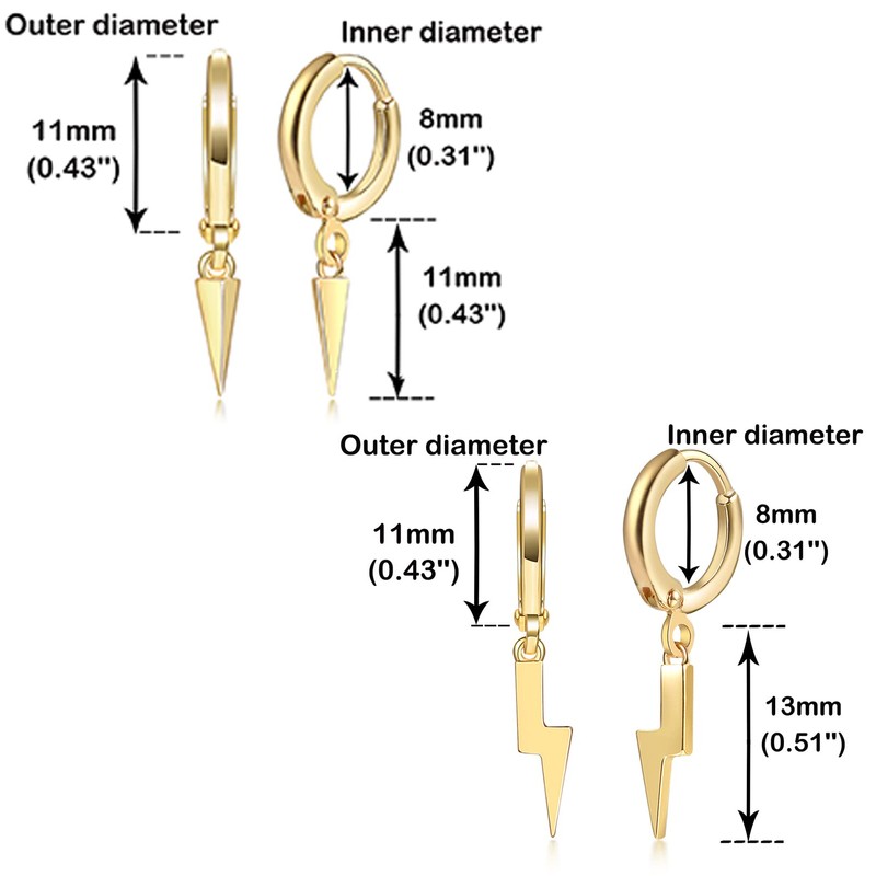 2 Paar Creolen Silber 925 für Damen | Golden Klein Ohrringe mit Anhänger Ahle & Blitz Klein Knorpel Creolen Ohrringe Set Piercingschmuck Weihnachten für Damen Herren