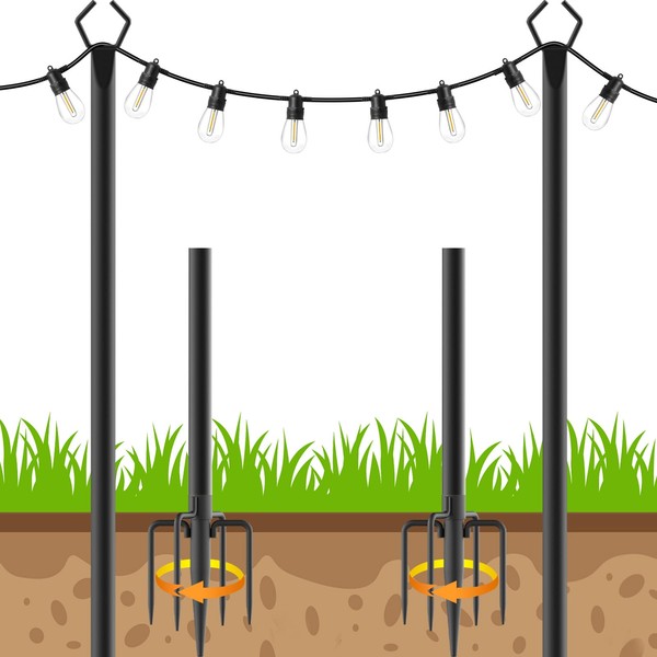 - ALL-SEASON STURDY DURABILITY: Our 2 Pack outdoor string light poles are crafted from high-quality, durable materials designed to withstand wind, rain, and extreme temperatures.Built for long-lasting performance, The sturdy construction ensures reliable stability, corrosion, Maintaining their strength and appearance through hot summers, cold winters, and everything in between.Keeping your lights and decorations securely in place.