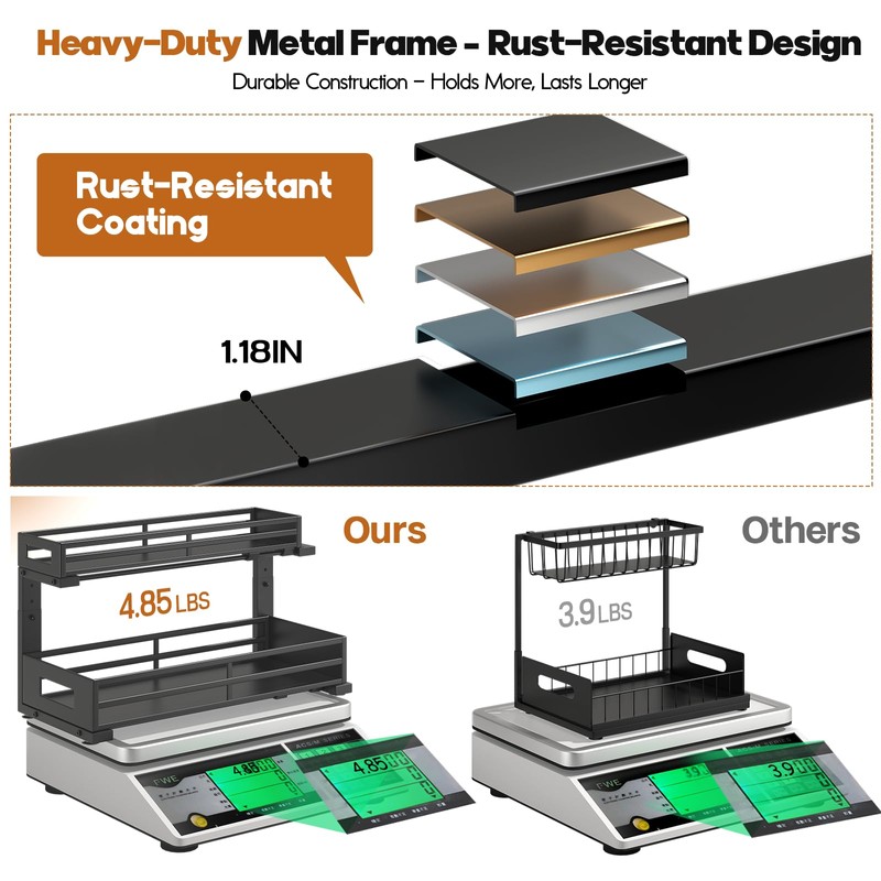 - 【Sturdy metal sheet frame& Rust-Proof】The under sink organizer is built from solid metal sheets with a strong frame and superior rust-resistant design, making it durable and ideal for long-term use in humid areas like kitchens,bathrooms and Laundry Room.
