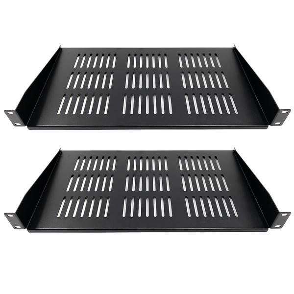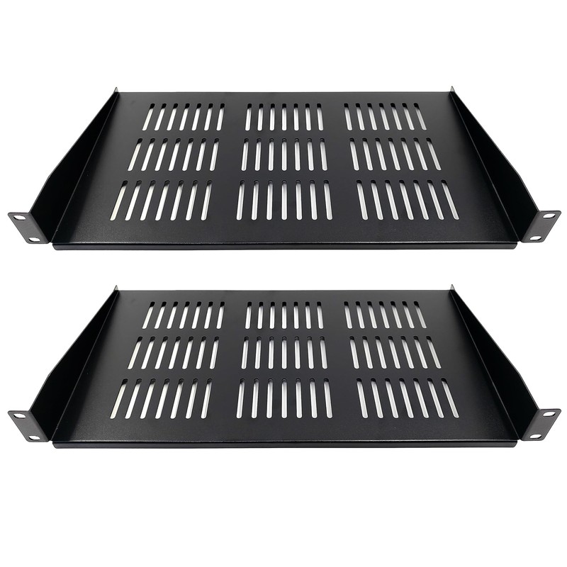 2-Pack 1U Vented Cantilever Shelf, 19” Rack Mount, Durable Steel for Network Equipment, 10" (25cm) Depth, Black