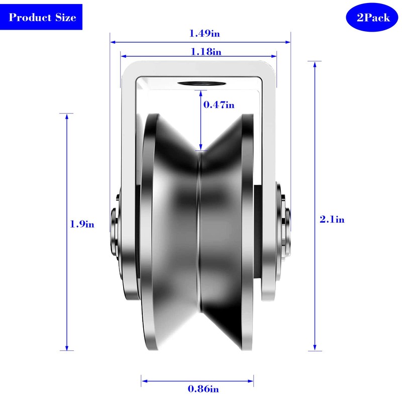 - ☆ Exact Size ☆ : 2 inches in wheel diameter, total height is 2.1 inches, the distance between V groove and the bracket is 0.86 inches (More size detail can be checked in the picture).