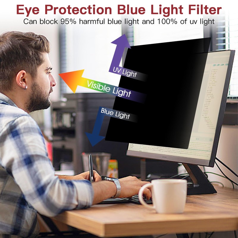- 【Glossy & Matte 2-in-1 Privacy Screen Protector】Experience unmatched versatility with this 2-in-1 reversible 22 inch computer screen privacy shield, engineered to adapt to your needs. The ultra-clear glossy side delivers vibrant, true-to-life colors for tasks demanding precision like graphic design or movie streaming, virtually no reduction in screen clarity, while the anti-glare matte side eliminates most of harsh reflections in bright offices or sunny environments – no need to sacrifice clarity for comfort.