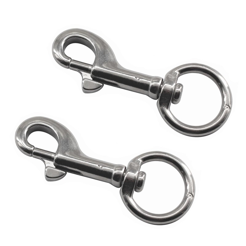 2 Pack 316 Stainless Steel Marine Grade Single Ended Carabiner Hook for Dog Leash, Keychains, Boat Ropes and Cages 120mm