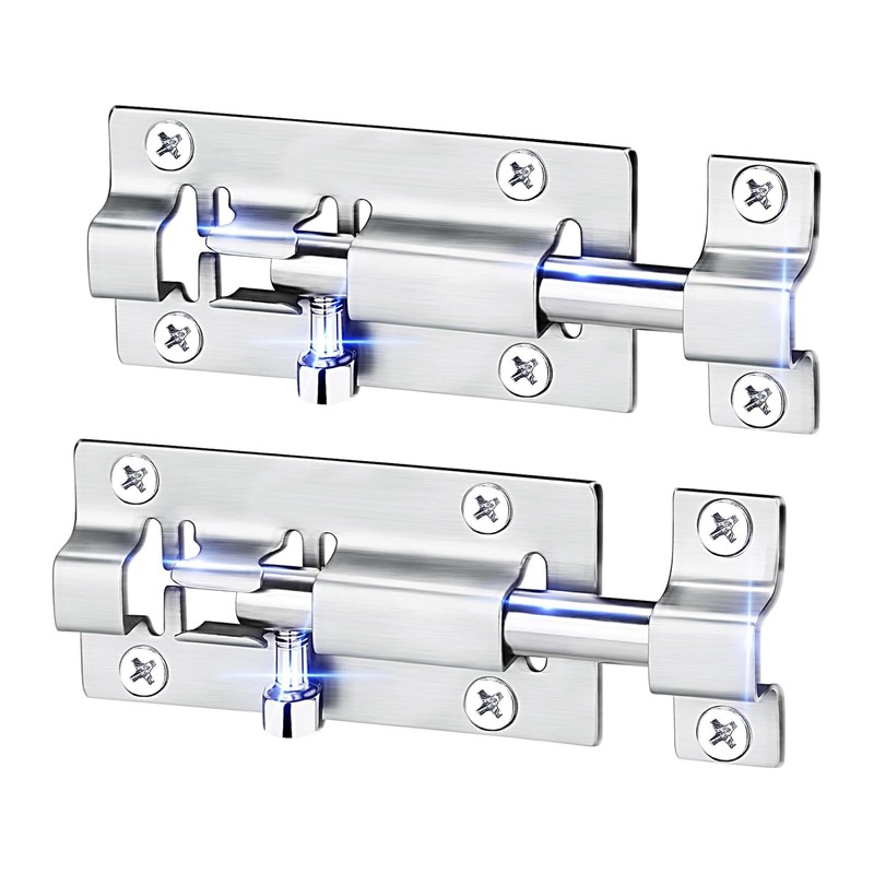 2 Pack 4" Chrome Door Bolts, Heavy Duty Stainless Steel Barrel Slide Latch Locks for Wooden Gates, Shed Doors, and Bathroom, Rustproof Secure Design with Screws.