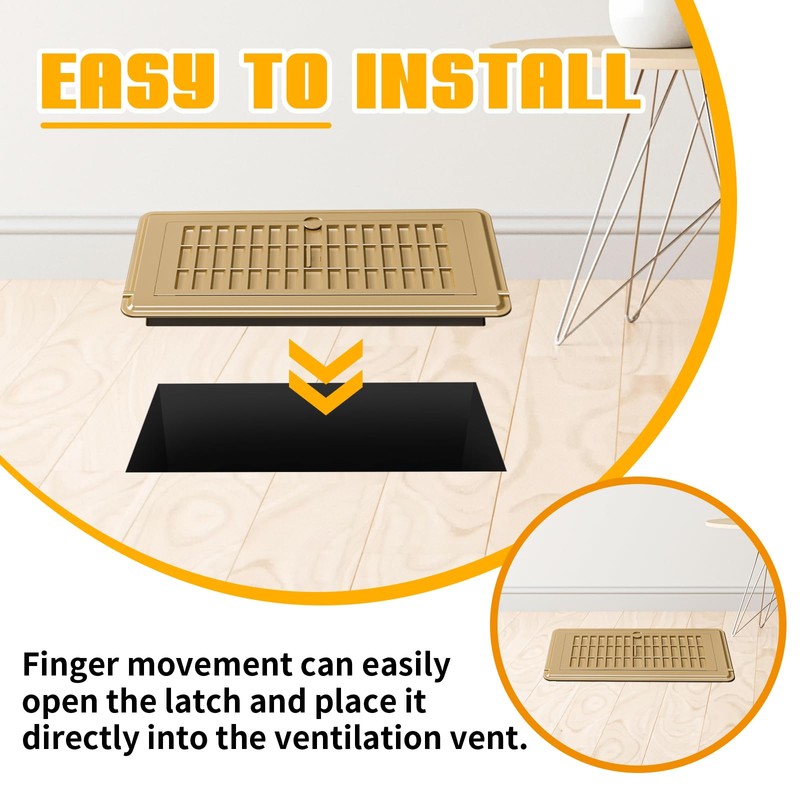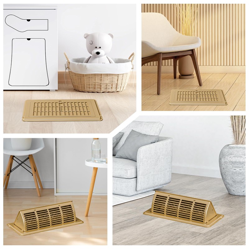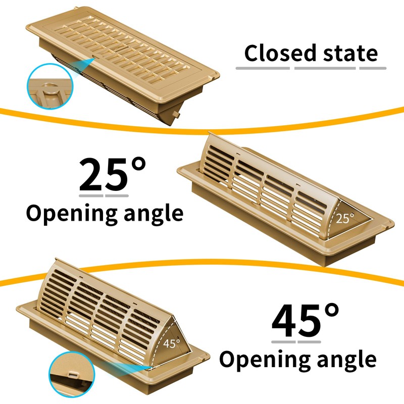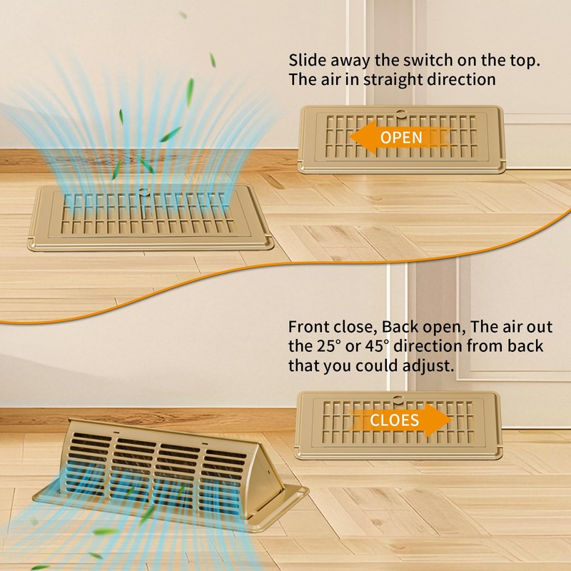 - 【Smart Airflow Control】→ Dual Ventilation Modes ➤ Closed: Traditional floor register ➤ Open: Multi-directional deflector ✦ Compatible with all HVAC systems