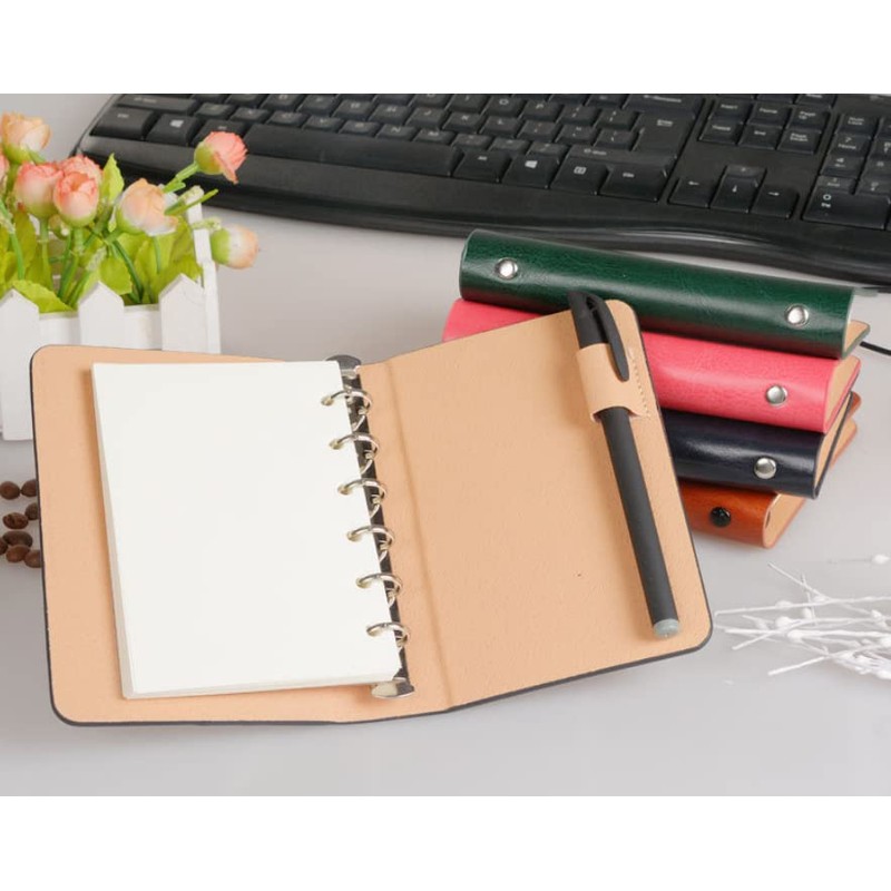 2-Pack 6 Ring Binder Cover, Leather A7 Binder Notebook Cover Refillable Loose Leaf Round Ring Personal Journal with Insert 50 Sheets Paper ,Mini Pocket Notepad