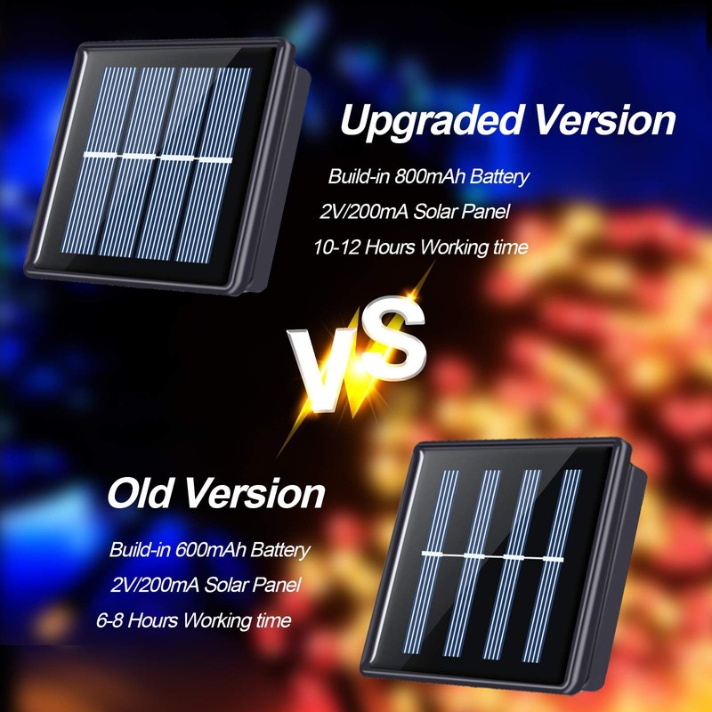 - High Efficiency Solar Powered & Auto On/Off: Solar energy supply, no extra utility electric cost, and no need to replace the battery. Light sensor controls the solar string lights auto on at dark and auto off at daytime. This outdoor string lights with a rechargeable 1XAA 1.2V 800mAh Ni-MH battery can work up to 10 hours or more when fully charged.