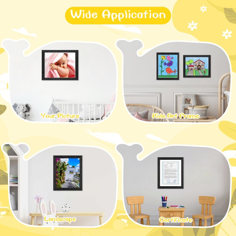 - 🍅 Kids Art Frames Set Size --- This child artwork frames is perfect for showcasing children's artwork, with a size of 8.5x11 inches without mat. proudly display your little kids' masterpieces with ease.