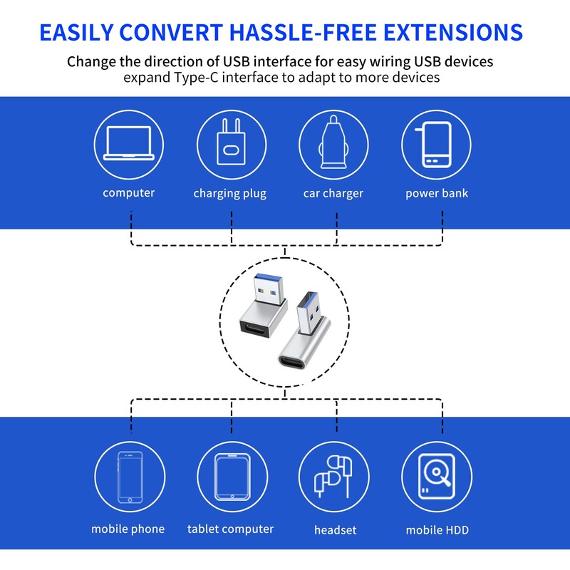 • 【Data Sync & Charging】This USB A Male to USB C Female Adapter is compatible with any laptop/tablet/wall charger with a Type A port. This adapter allows you to connect standard USB C accessories/cables to USB devices for data transfer and charging.