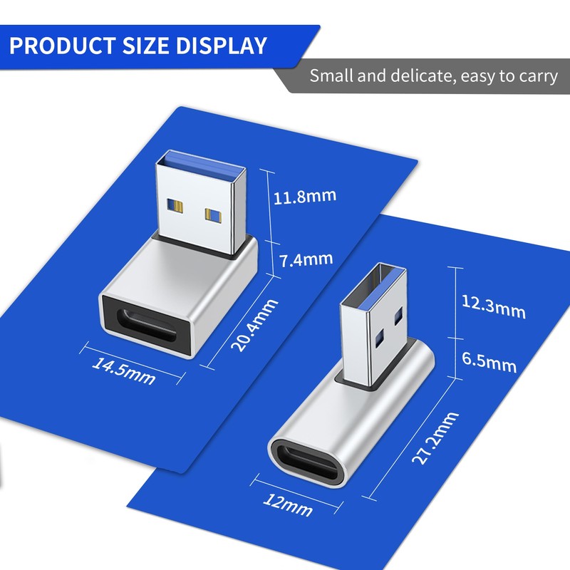 2-Pack 90 Degree USB A Male to USB C Female Adapter, USB A 3.0 Male to USB C ...