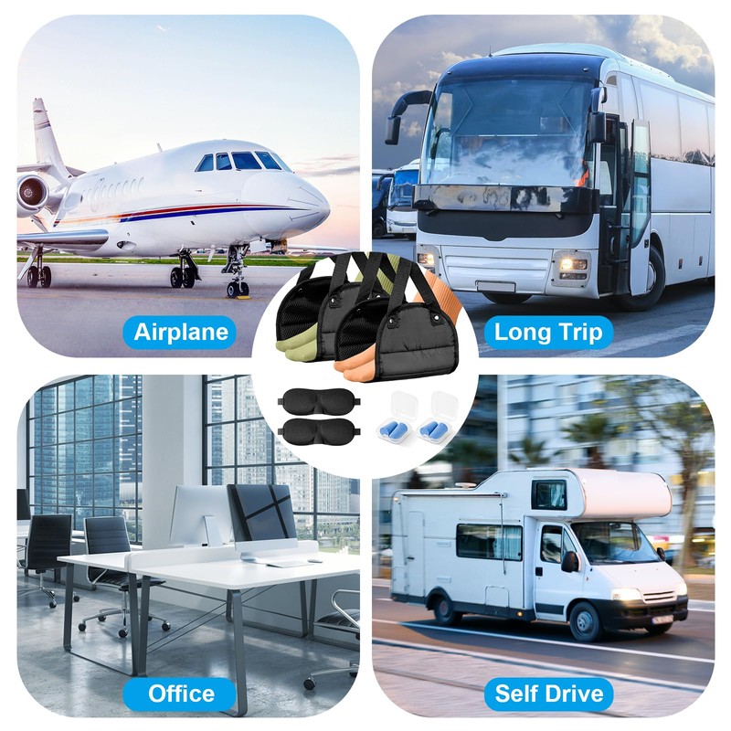 - Wide Range of Applications: Our airplane footrest is an travel essentials item for long-distance flights. It's not only useful on airplanes, but also suitable for cars, trains, and ships. You can use it at home, in the office, and even in hotels, any time you want to lift your feet to rest or sleep. Wherever you are, this foot rest provides excellent comfort for your feet.