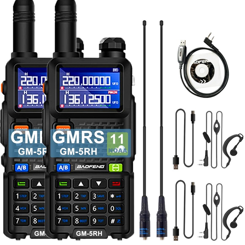 - BAOFENG GMRS Radio GM-5RH USB-C Charging Two Way Radio Long Range upgrade of UV-5R Ham Radio 11 NOAA CH Rechargeable 2500mAh Battery