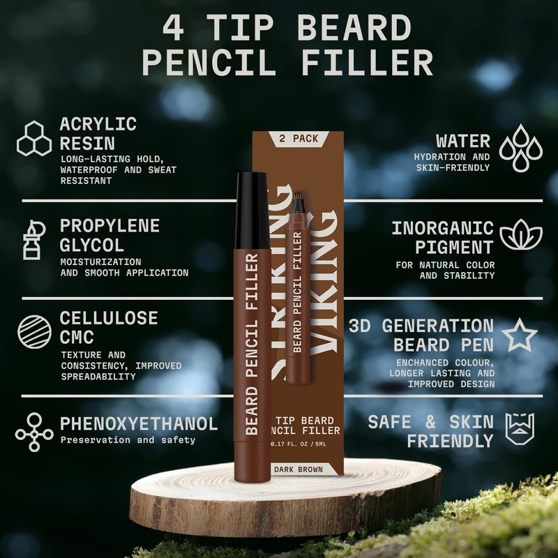 - Contour a Full Beard or Designer Stubble - The Striking Viking beard filler pencil for men is lightweight and easy to handle, Perfect to define a neat beard contour and say goodbye to the gaps and patches, for a well-groomed appearance.