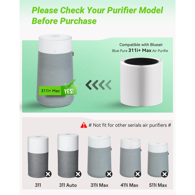- 【NOTE】Not compatible with Blue Pure 311, 311 Auto, 311i Max, 211, 211+ Auto, 211i Max, 411, 411 Auto, 411i Max, 511, 511i Max, Mini Max, please check the model number before placing your order