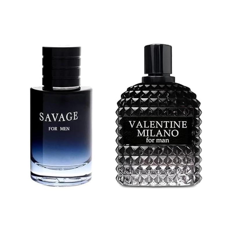 2 Pack Bundle of Savage for Men and Valentine Milano for Men Eau de Parfum Men's Fragrance 3.4oz/100ml, Natural Spray, Long Lasting Perfume for Men