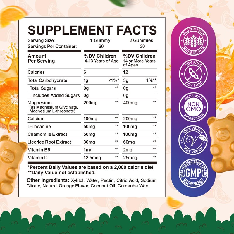 - SUGAR-FREE & STOMACH FRIENDLY - The sugar-free formula, sweetened with xylitol, includes a natural orange flavor that’s gentle on teeth and easy on the stomach. These magnesium gummies for kids are simple to chew, perfect for both daytime and bedtime routines, offering support for calmness in a kid-friendly way